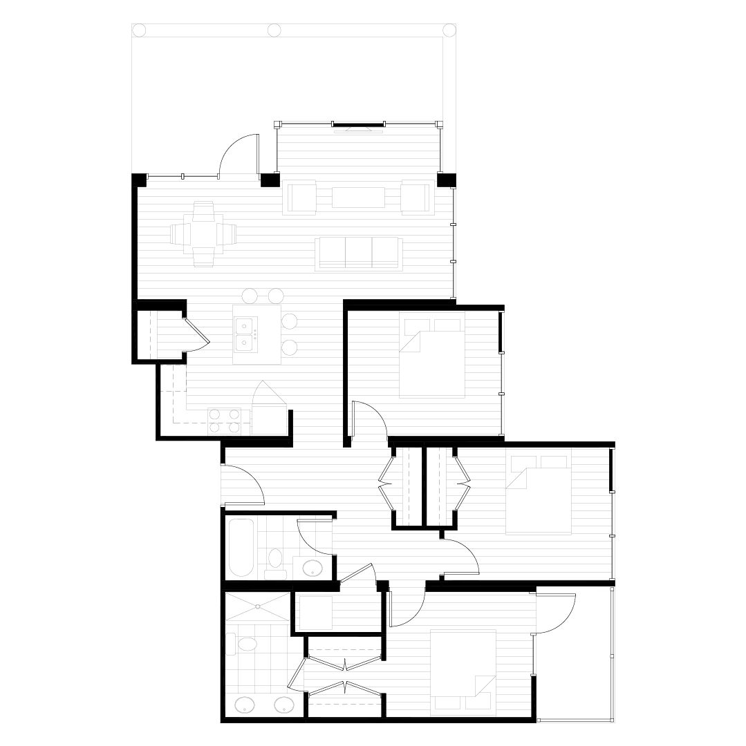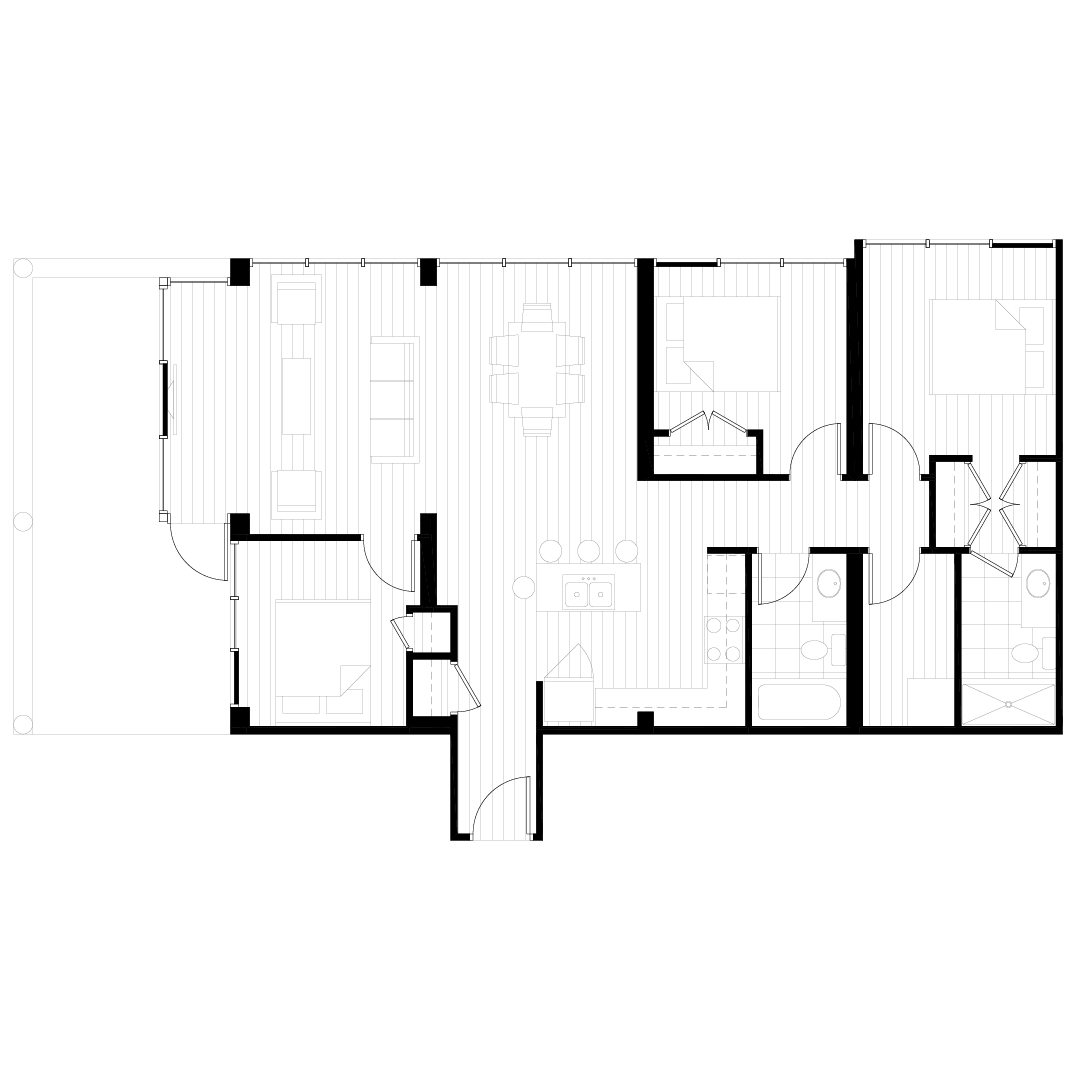 Generous patios give residents additional privacy for indoor-outdoor living and take advantage of the surrounding views. The oversized windows flood the spacious interiors with natural light.