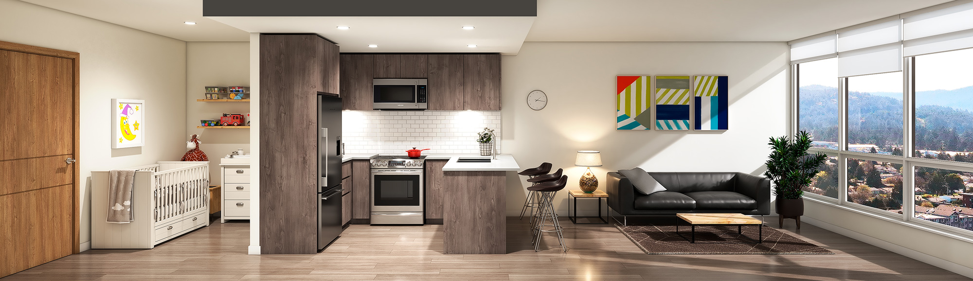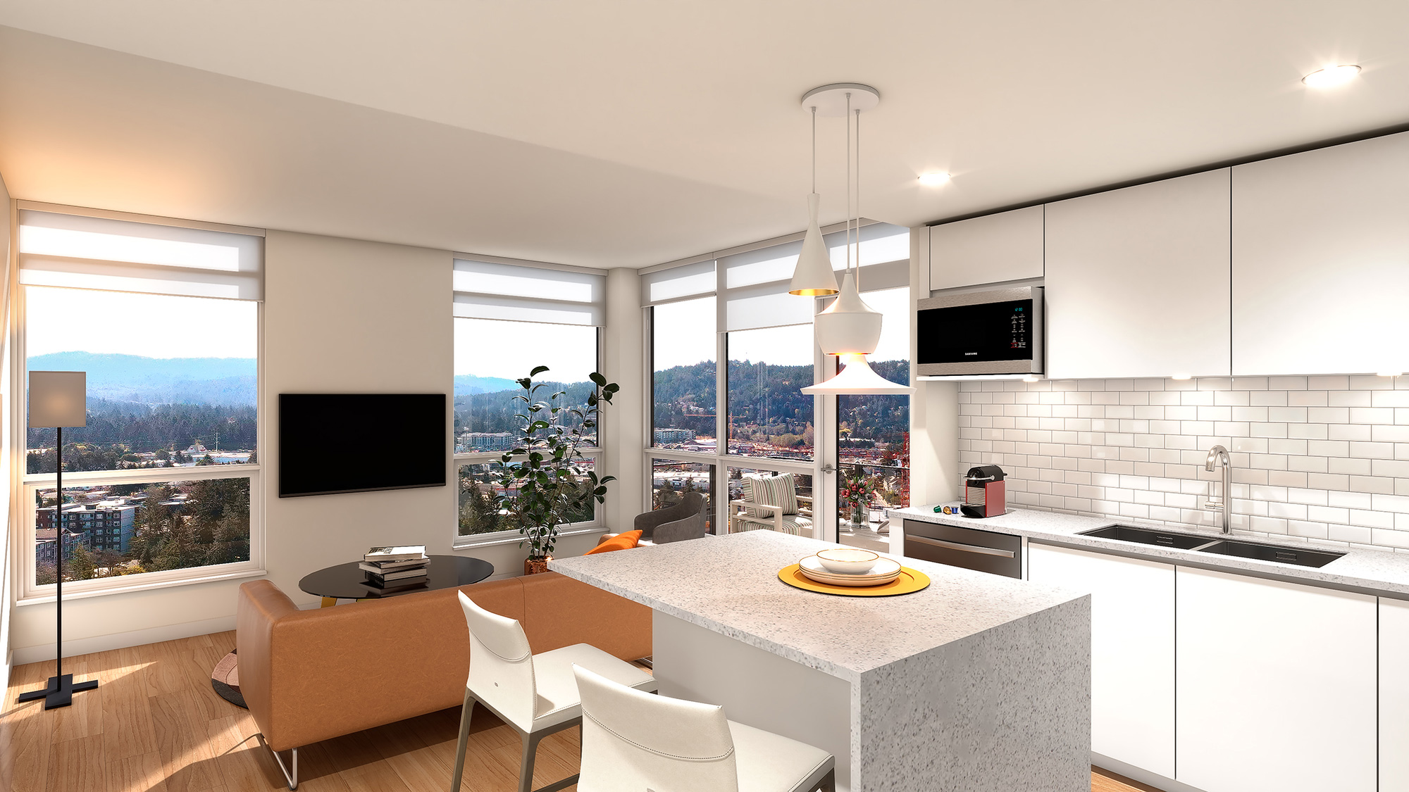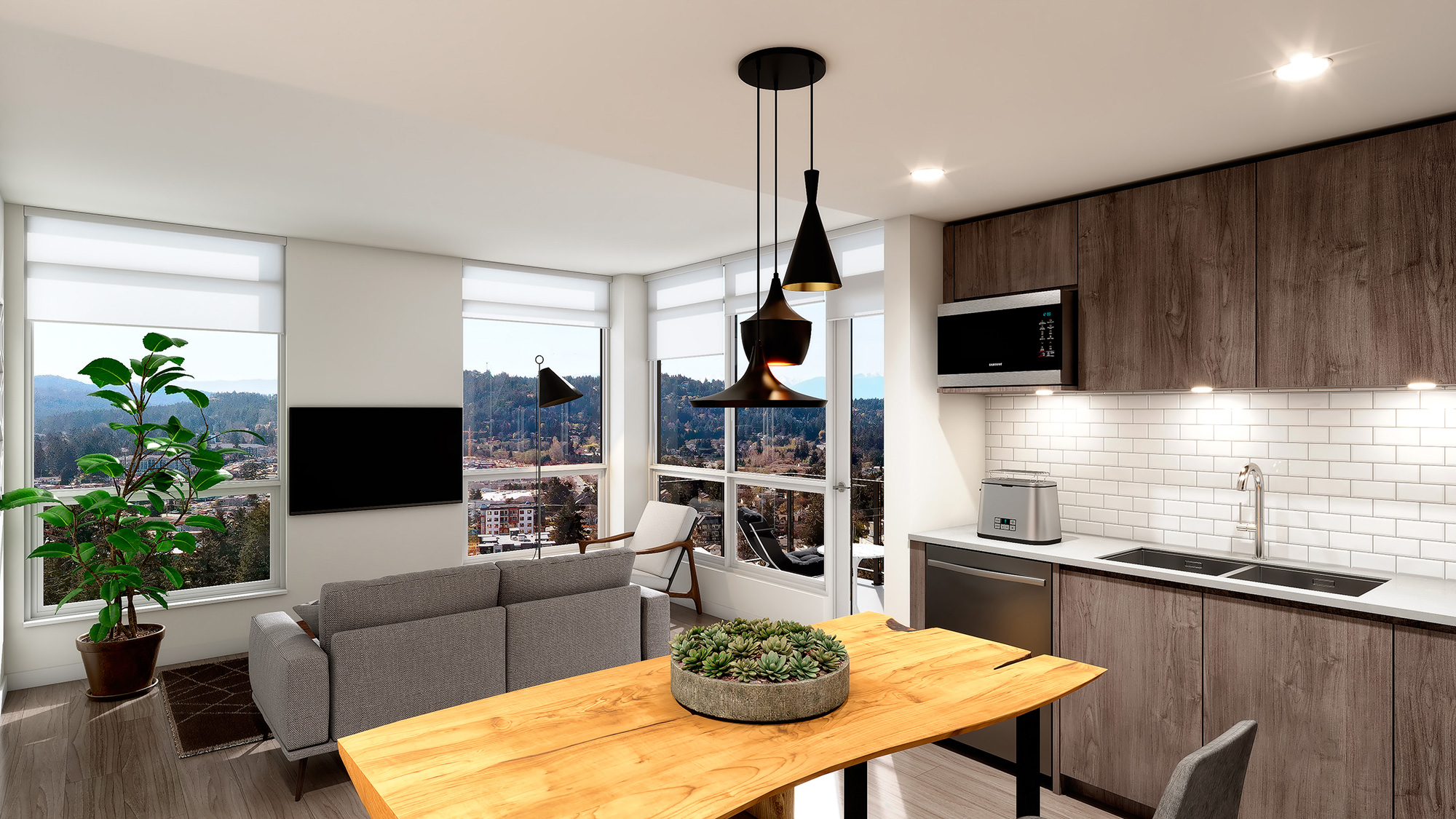 The Scene will be the tallest mixed-use towers in downtown Langford and the first concrete high-rise towers in the area. The contemporary exterior and heights will redefine the landscape of the downtown core.