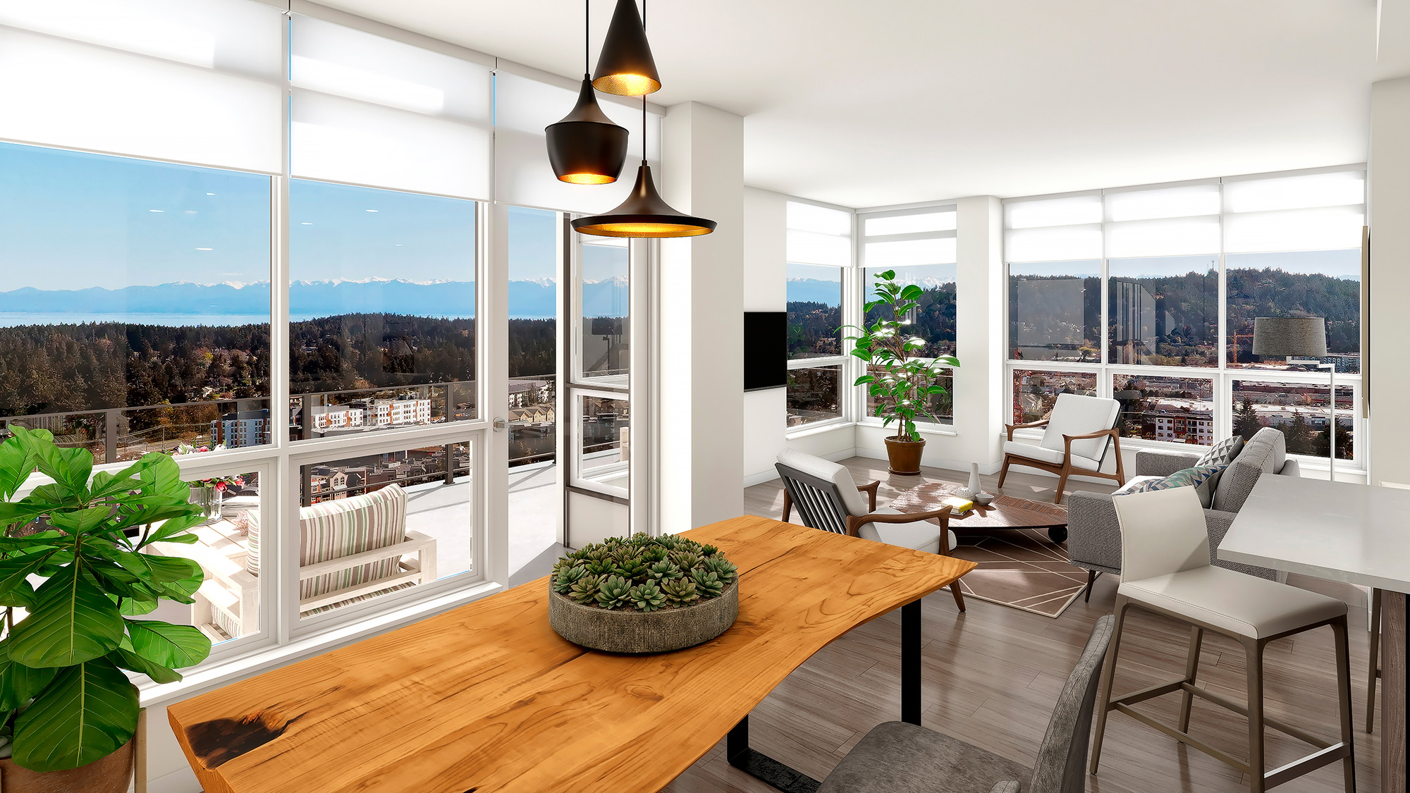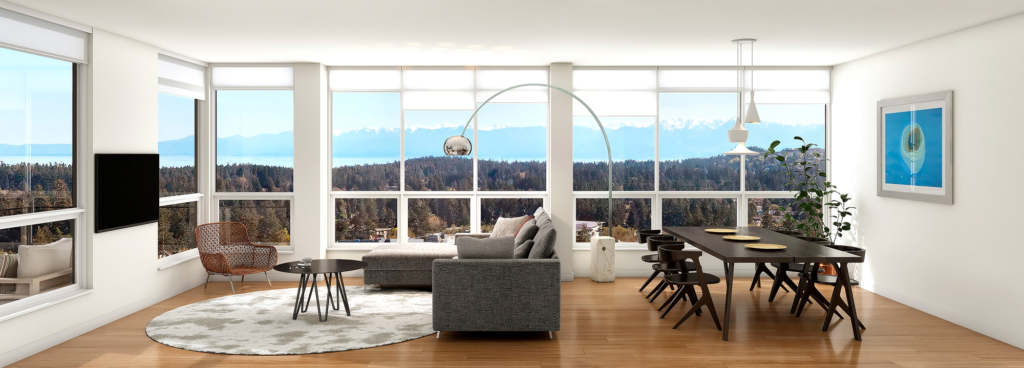 The Scene delivers a seamless blend of quality, functionality and elegance. Durable concrete and steel construction offers unparalleled mountain and ocean views. Stunning architectural details reflect a West Coast contemporary aesthetic.